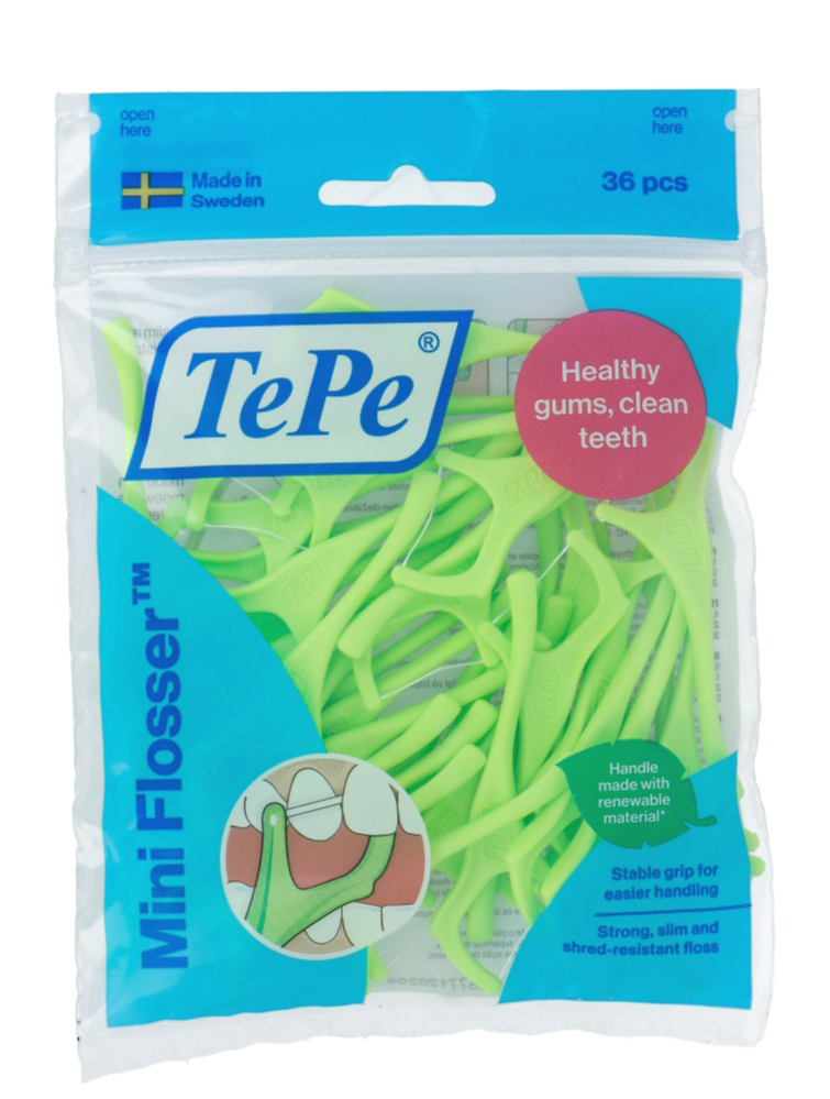 Het bevat sterke flosdraad die gemakkelijk tussen de tanden glijdt en helpt bij het verwijderen van plaque en voedselresten. Wat is TePe Mini Flosser 36ST?TePe Mini Flosser is een handig en efficiënt hulpmiddel voor het reinigen van nauwe ruimtes tussen de tanden.