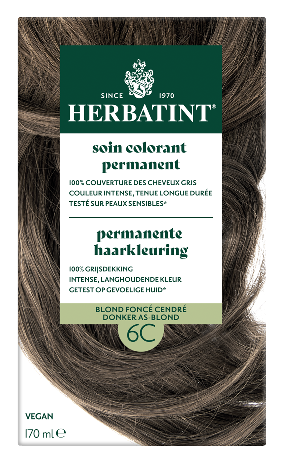 Wat is Herbatint Permanente Haarkleuring Donker As-Blond 6C 170ML?Herbatint Permanente Haarkleuring Donker As-Blond 6C is een natuurlijke en verzorgende haarkleuring zonder ammoniak en met 100% grijsdekking.