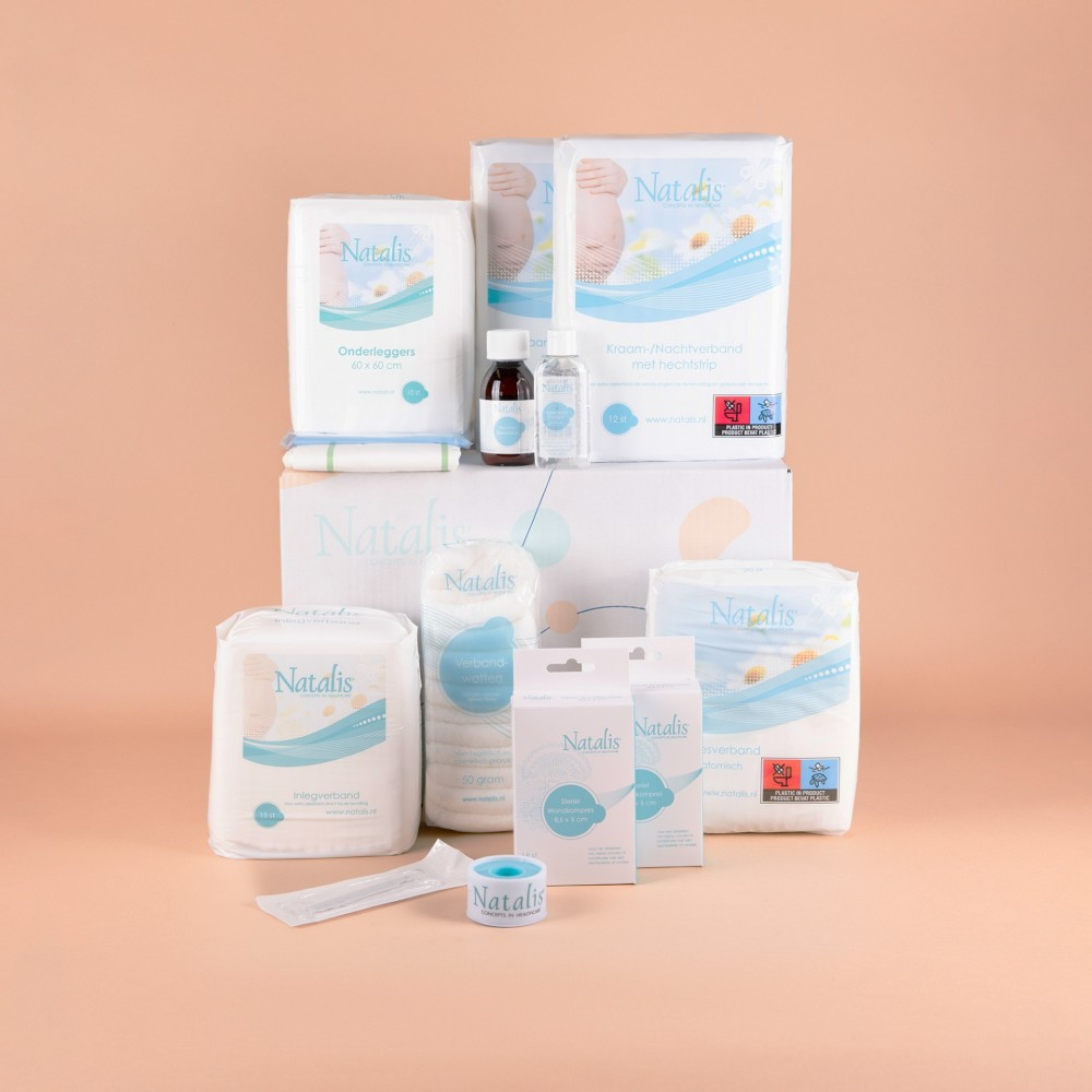 Wat is Natalis Kraampakket Basis 1ST?Natalis Kraampakket Basis biedt een complete set medische hulpmiddelen die essentieel zijn voor de bevalling en de eerste dagen daarna.
