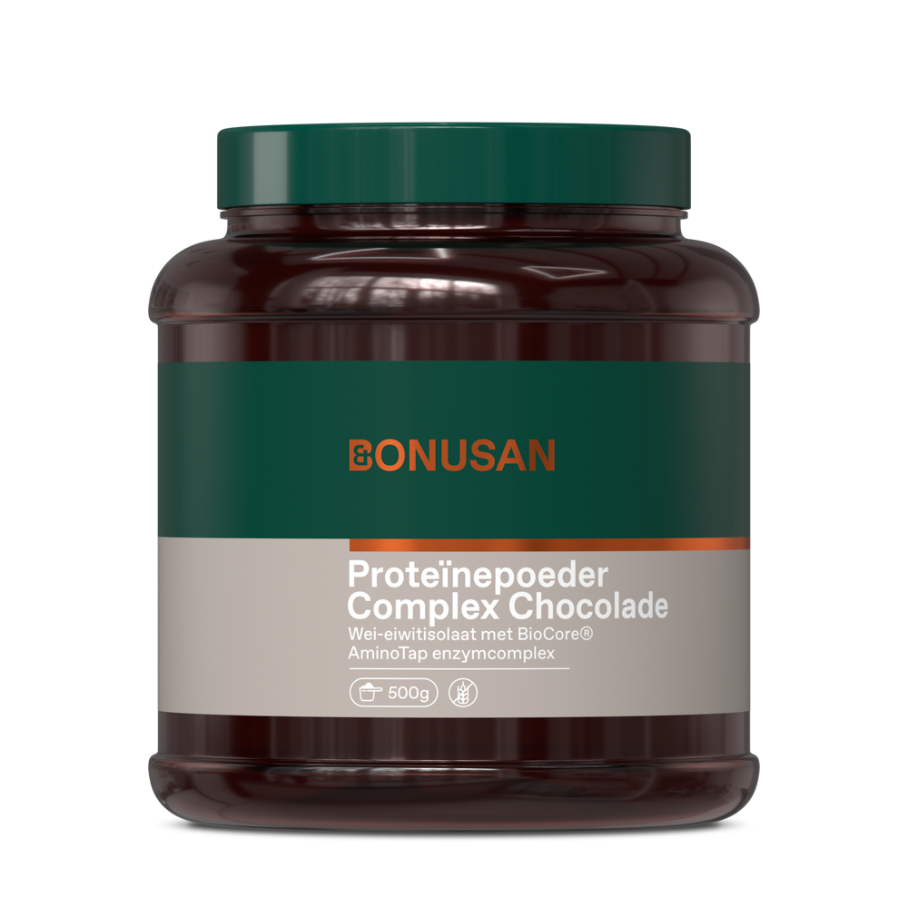 Bonusan Proteïnepoeder Complex Chocolade (500 gram) is een eiwitsupplement.