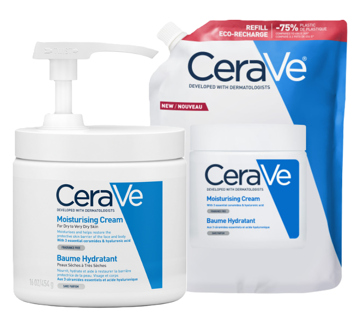 CeraVe Hydraterende Crème Refill bundel bevat een combinatie van CeraVe Moisturising Cream (454gr) en CeraVe Hydraterende Crème Navulling (473gr).