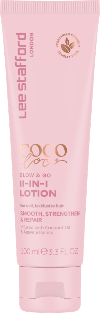 Wat is Lee Stafford Coco Loco Blow & Go 11-in-1 Lotion 100ML?Lee Stafford Coco Loco Blow & Go 11-in-1 Lotion (100ml) is een voedende föhnlotion met tropische kokosgeur, gemaakt om het haar te beschermen tijdens het föhnen en stylen.