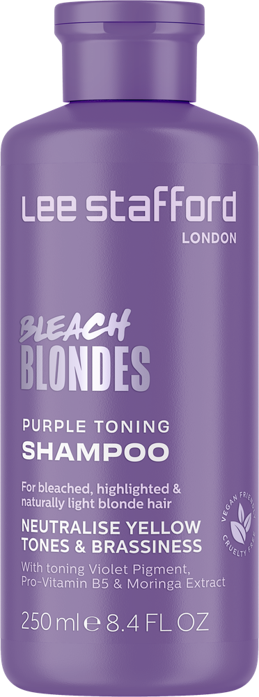 Lee Stafford Bleach Blondes Purple Toning Shampoo (250ml) is een verzorgende zilvershampoo die ongewenste gele en koperachtige ondertonen in blond haar tegengaat.