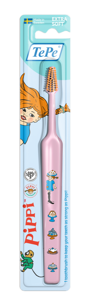 TePe Pippi Extra Soft Tandenborstel (1st) is speciaal ontwikkeld voor kinderen vanaf 3 jaar en combineert effectieve mondverzorging met vrolijke kleuren en Pippi Langkous-designs.