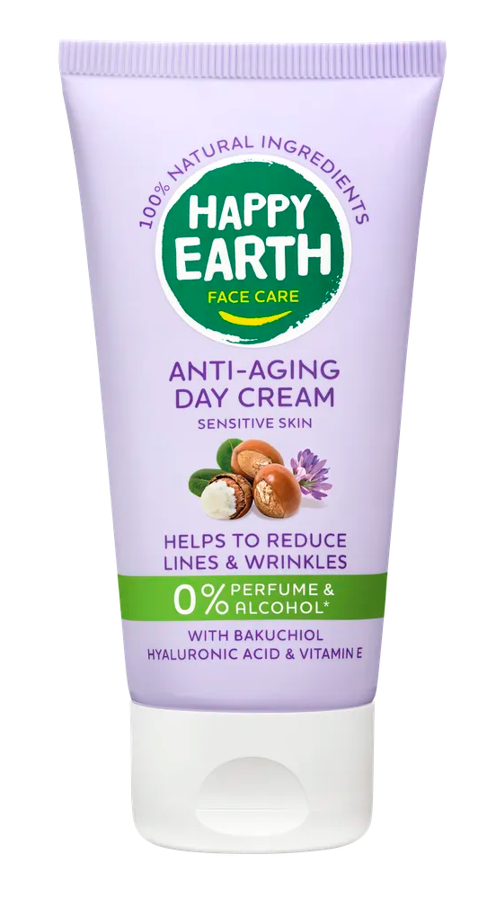 Wat is Happy Earth Anti-Aging Day Cream 50ML?Happy Earth Anti-Aging Day Cream (50 ml) Is een 100% natuurlijke dagcrème die geschikt is voor de gevoelige huid en de huid dagelijks verzorgt en hydrateert.