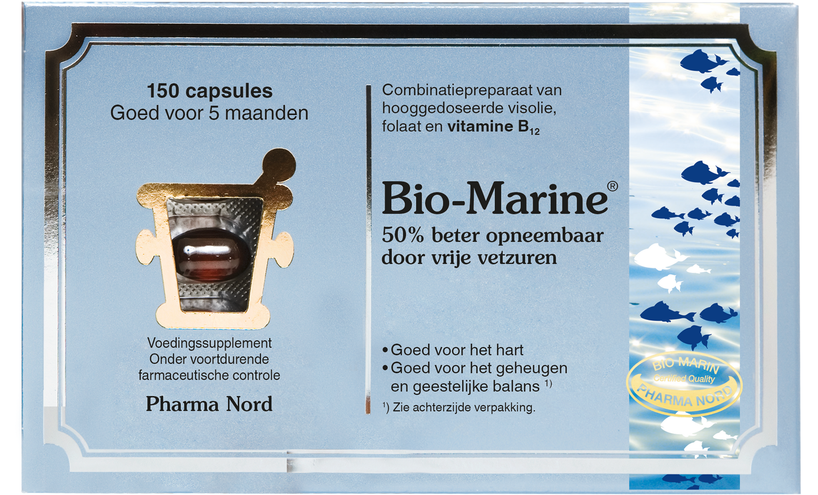 Bio-Marine Capsules is een combinatiepreparaat van hooggedoseerde visolie, folaat en vitamine B12.