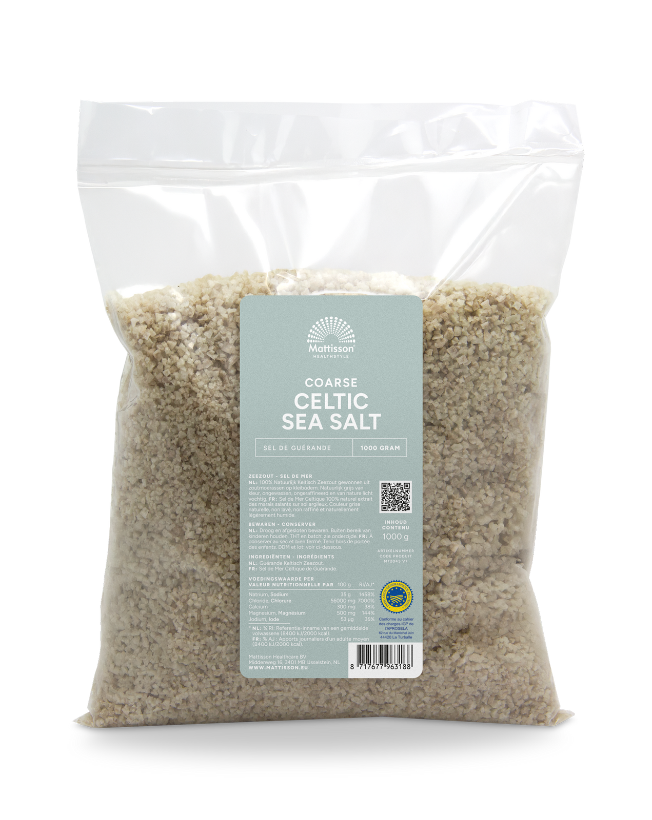 Mattisson HealthStyle Celtic Sea Salt Grof is een keltisch zeezout dat handmatig gewonnen is volgens traditionele, meer dan 2000 jaar oude Keltische methode in Bretagne, Frankrijk.