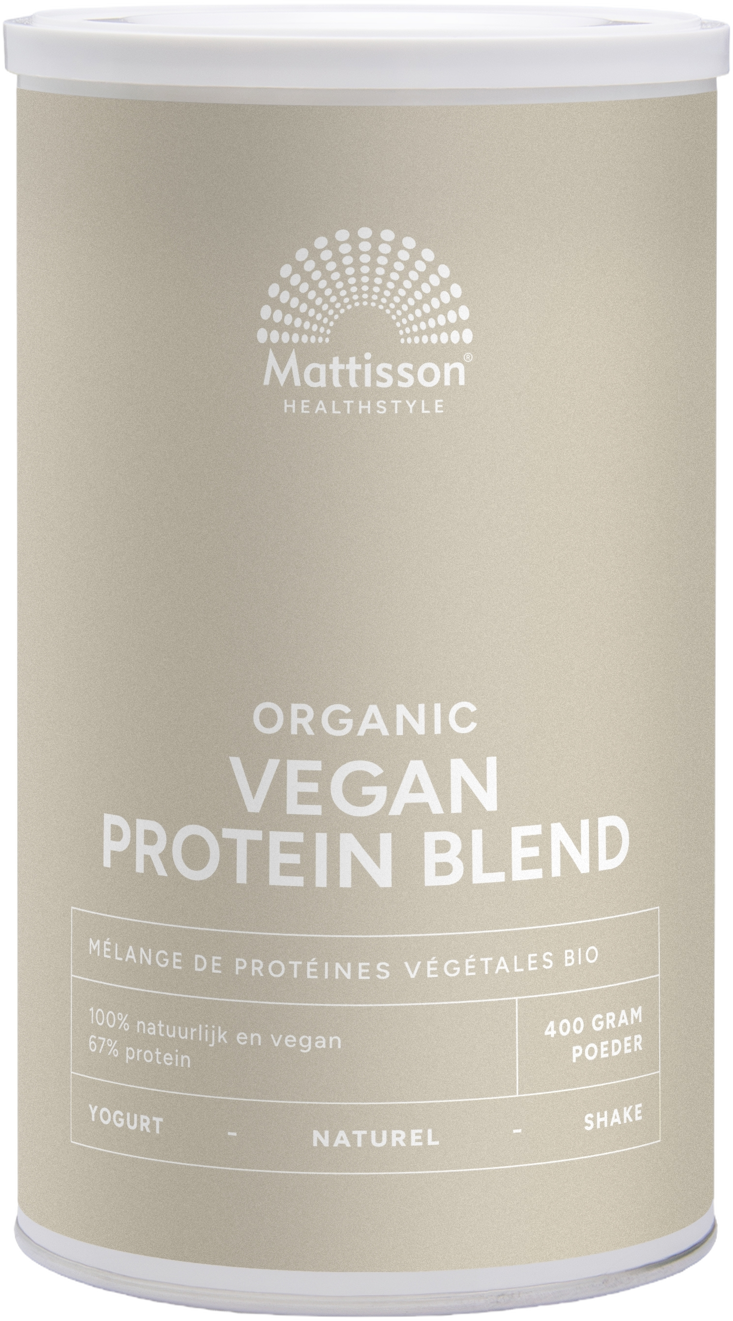 Mattisson HealthStyle Blend Organic Vegan Protein is een 100% biologische en vegan eiwitpoeder en daardoor een goede vervanger van (dierlijke) eiwitbronnen zoals Wei en Soja proteïnen.