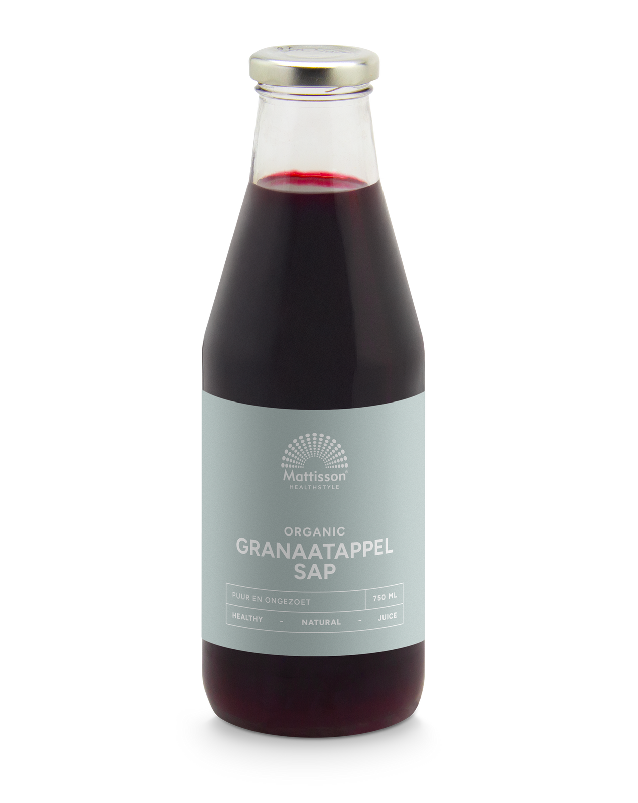 Het pure, gepasteuriseerde sap is licht troebel, omdat slechts het grovere vruchtvlees eruit wordt gefilterd. Mattisson HealthStyle Granaatappelsap is een heerlijke, biologische sap van granaatappel.