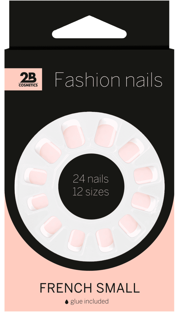 Met de 2B Fashion Nails French Small geniet u tot wel een week van mooie en comfortabele kunstnagels. 24 nagels in 12 verschillende maten.