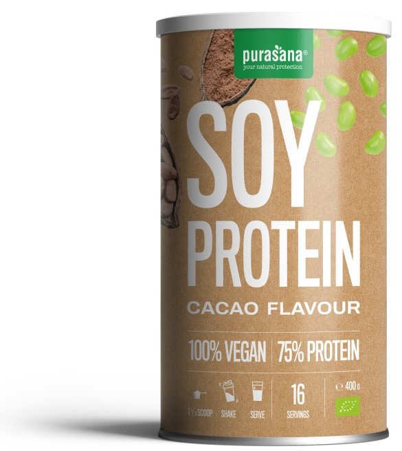 Purasana Soy Protein Cacao is een 100% biologisch en plantaardig eiwitpoeder op basis van soja-eiwit met de heerlijke smaak van cacao. Het nieuwe alternatief is Purasana Soya Protein Powder Cacao.