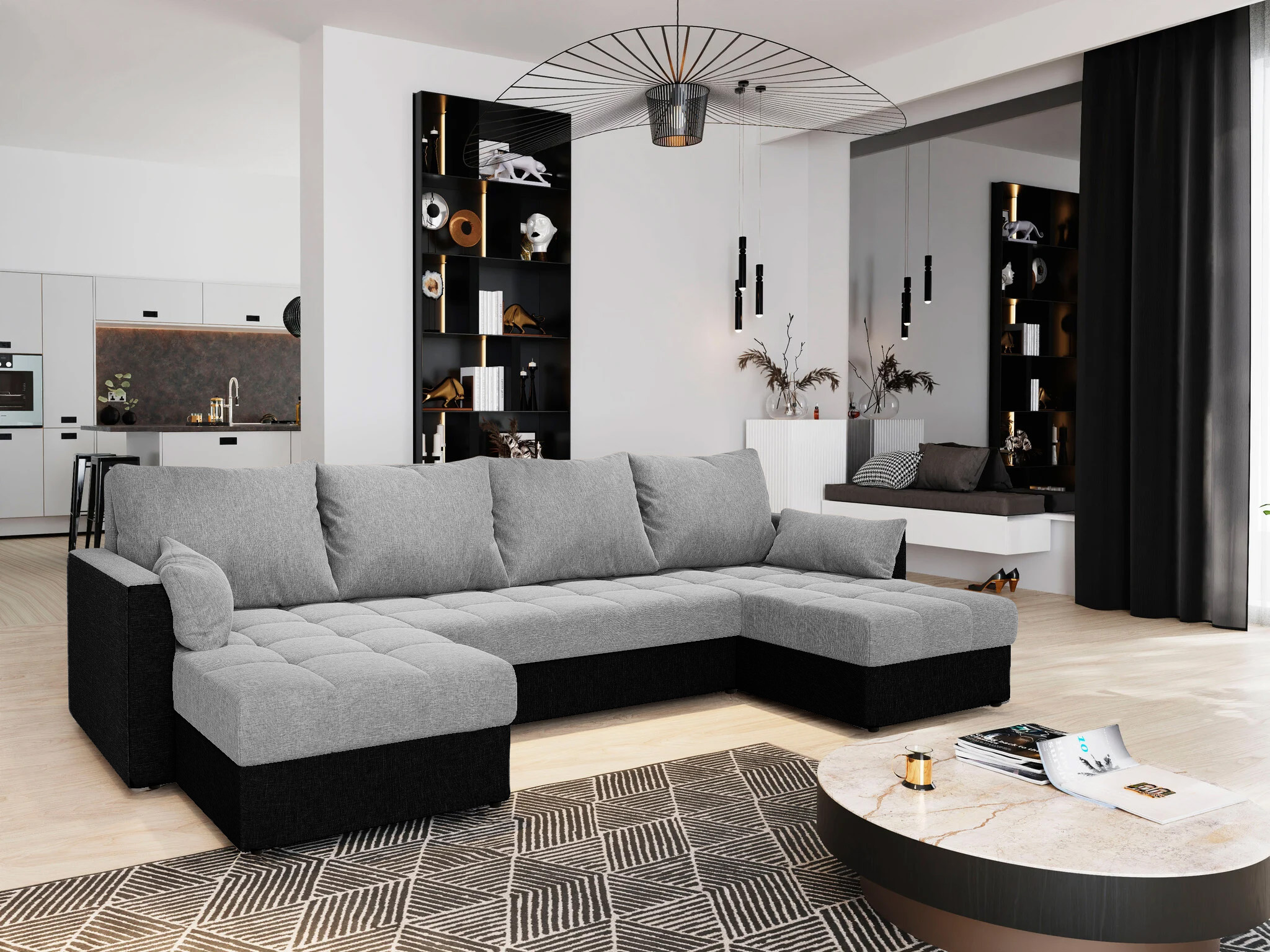 Met gemak verander je de U-vormige opstelling in een comfortabel tweepersoonsbed. Verken deze multifunctionele U-slaapbank met snelle levering en handige opbergruimte.