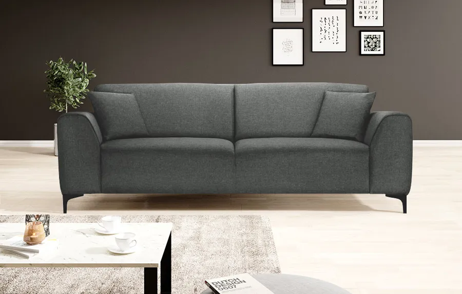 Zitbank Dallas 3 zits heeft een verfijnd ontwerp met afgeronde lijnen, slanke poten en een luchtig silhouet.