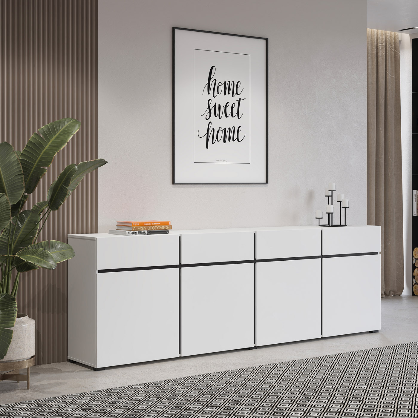 4 lades - Wit. Dressoir Crotone - 4-deurs incl.