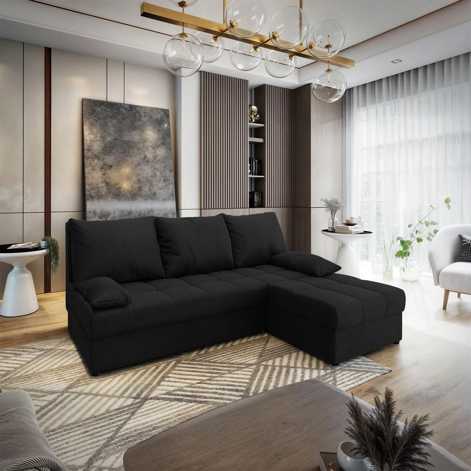 2dekans Hoekbank Rio - Zwart - Universeel - Slaapbank met opbergruimte [Niet in originele verpakking - Kans op schade].