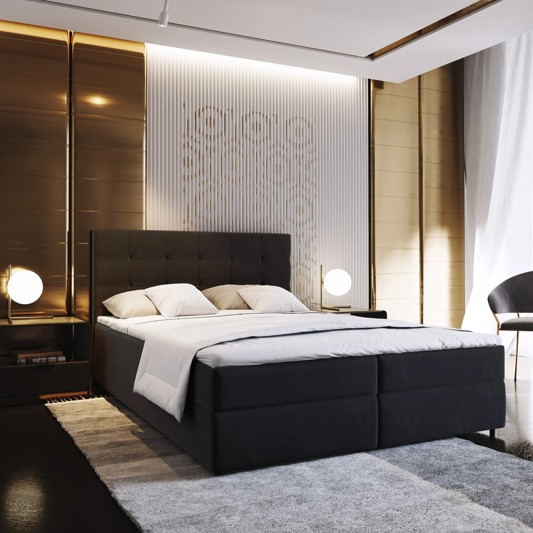 | Naam | 2Dekans Boxspring Met Opbergruimte Bloss - 140 X 200 Zwart [Kleine Stofschades Aan Boxen En Hoofdbord] |