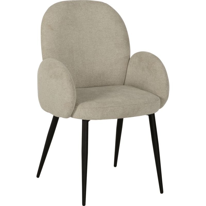 Eetkamerstoel Revy is sfeervol en super comfortabel! Met zn ronde vormen, armleuningen en zwarte metalen poten is eetkamerstoel Revy een moderne eetkamerstoel.