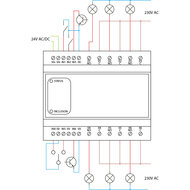 Kort | De 6 voudige DIN rail schakelaar is een potentiaalvrij relais van 6x16 A voor montage op een DIN-rail. |