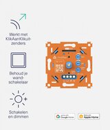 Matter inbouwdraaidimmer – Werkt met Matter-apps en KlikAanKlikUit-zenders | MAWD-250Bedien en dim je (bestaande) dimbare verlichting handmatig én via Matter-apps zoals Google Home en Apple Home.