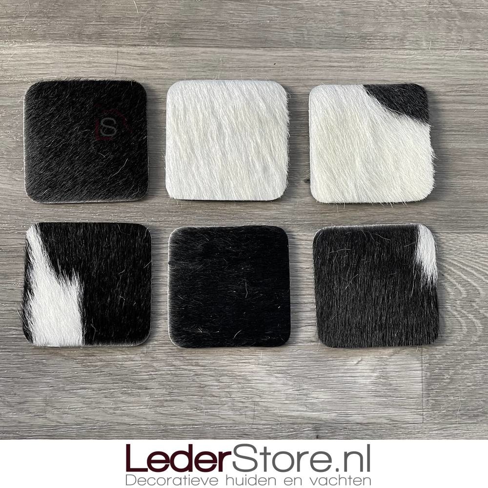 Koeienhuid Onderzetters Zwart Wit 10X10cm Ga naar Lederstore-nl