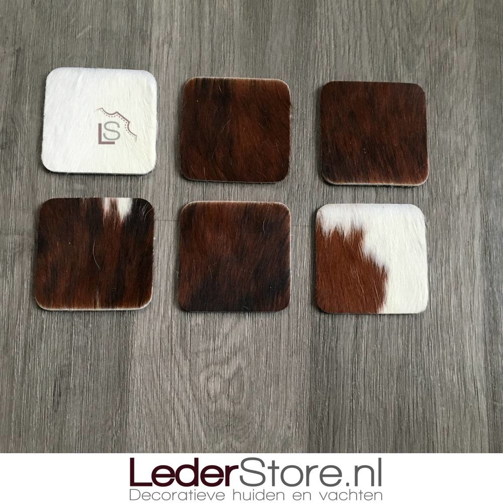 Koeienhuid Onderzetters Normandier Bruin Zwart Wit 10X10cm Ga naar Lederstore-nl