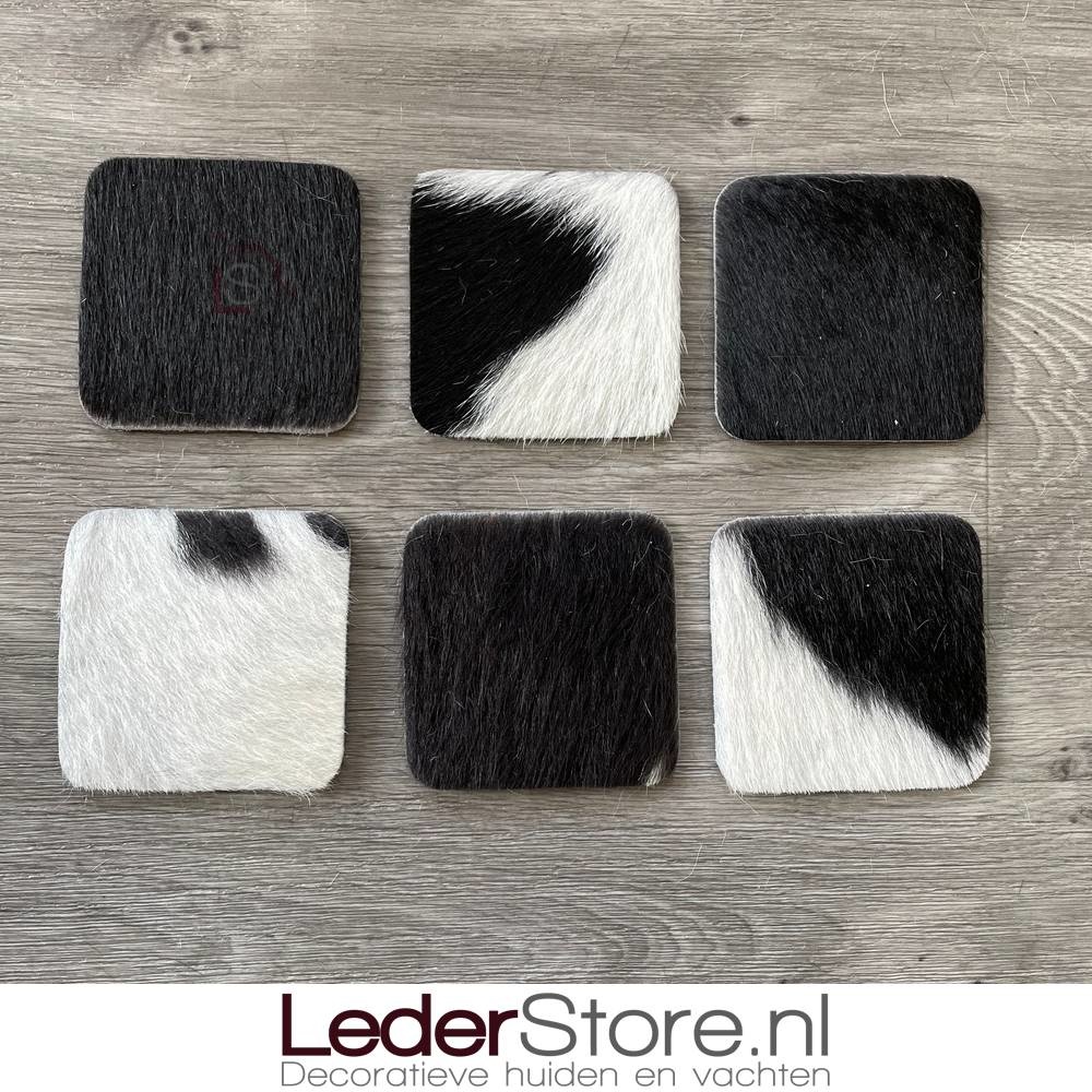 Koeienhuid Onderzetters Zwart Wit 10X10cm Ga naar Lederstore-nl