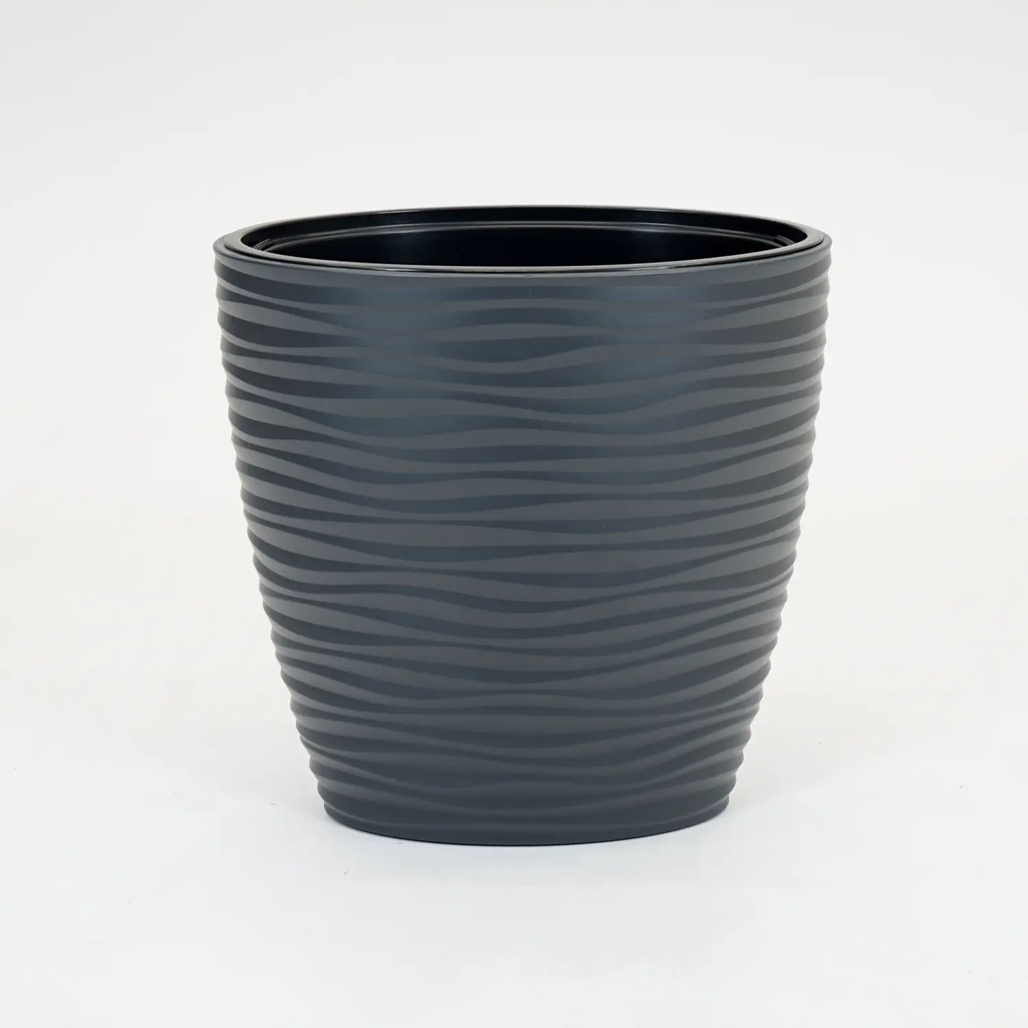 De Vita bloempot Sahara Dunes Ellipse 60 in antraciet is een stijlvolle en royale bloempot die door zijn ovale vorm en subtiele reliëfstructuur direct een luxe uitstraling heeft.