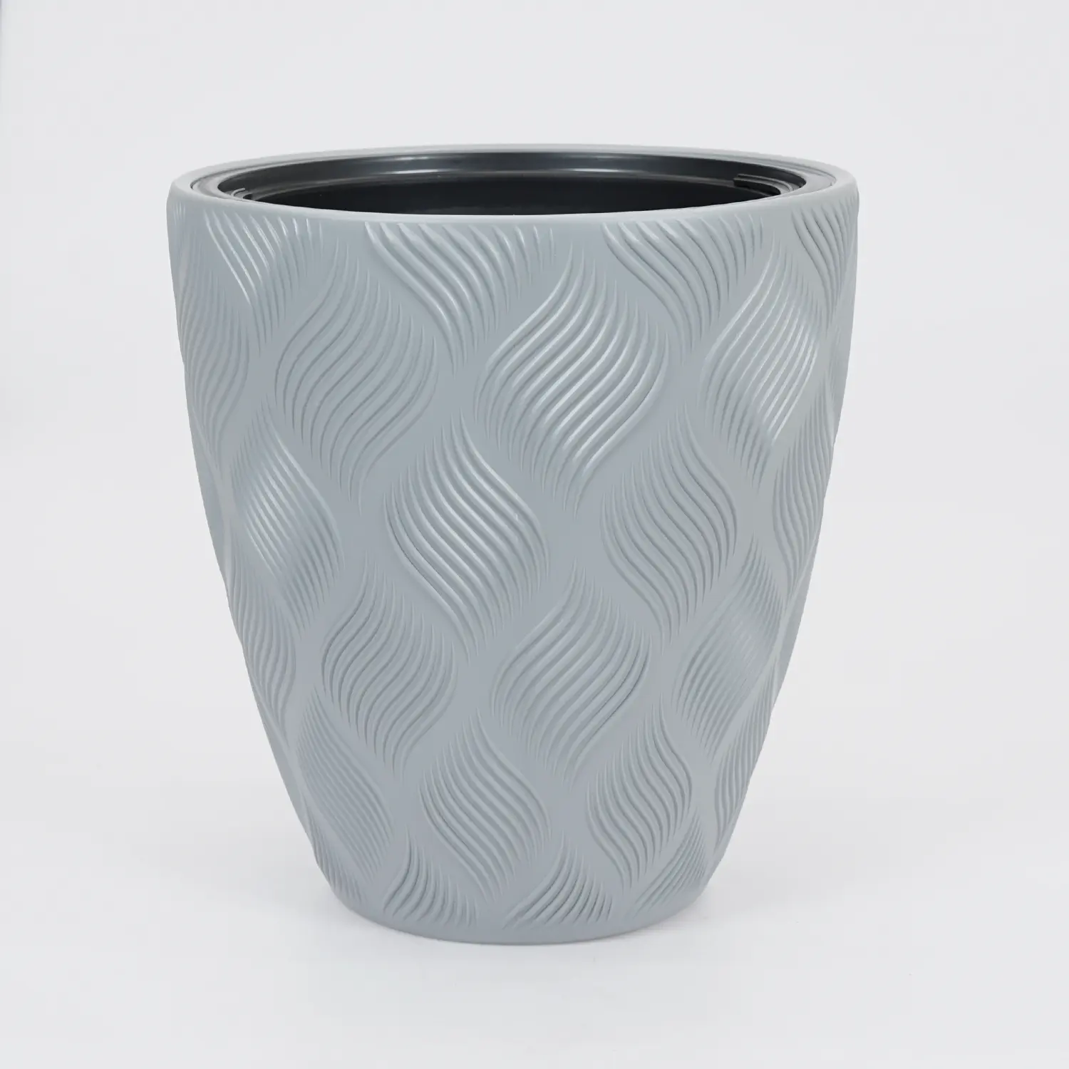 De Vita Flow 40 in grijs is een stijlvolle, praktische en veelzijdige bloempot die planten een mooie en stabiele plek geeft binnen en buiten..