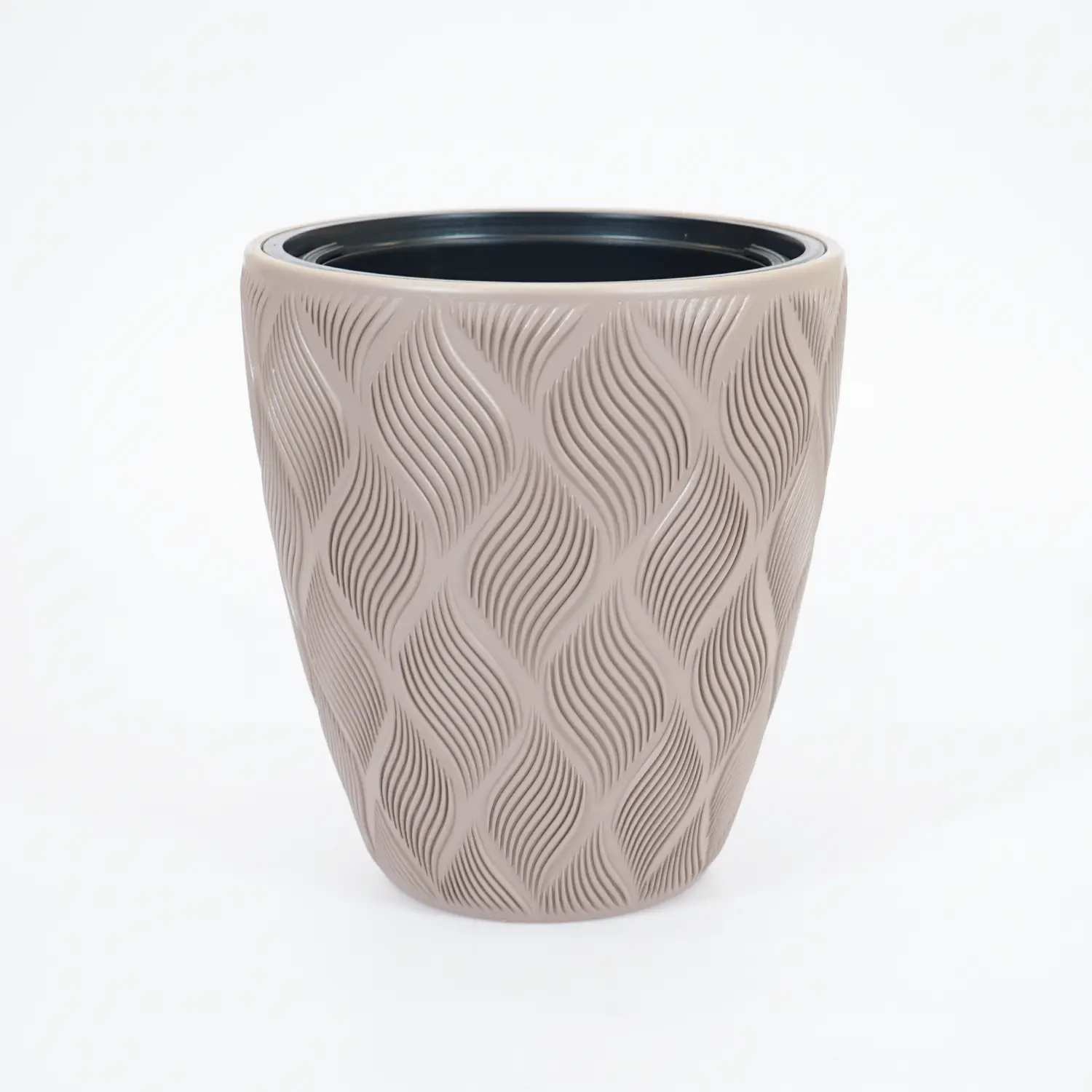 De Vita bloempot Flow 30 in taupe is een moderne en stijlvolle bloempot die door zijn rustige, natuurlijke kleur moeiteloos samengaat met verschillende soorten planten en interieurs.