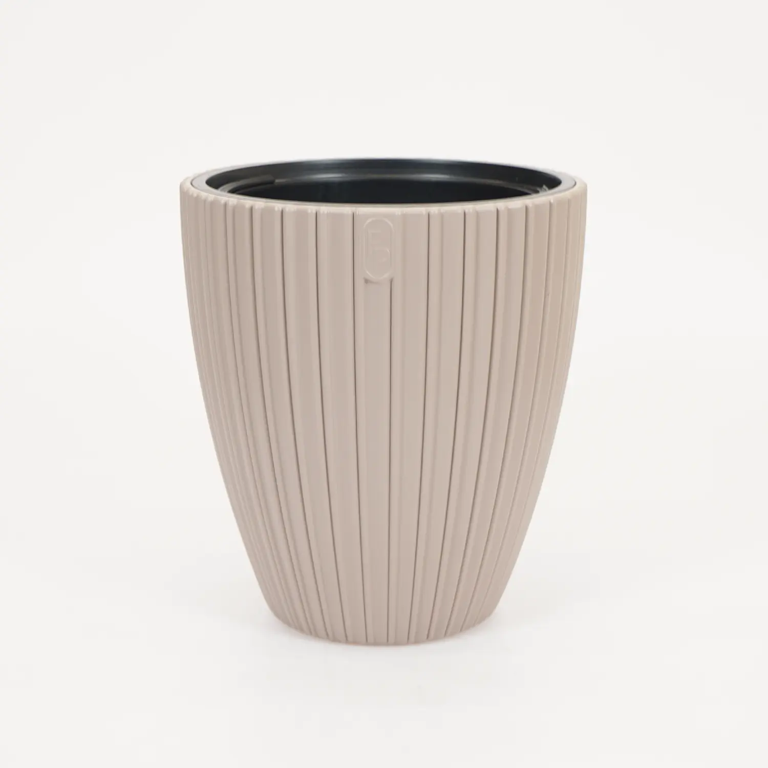 De Vita Mika 30 in taupe is een moderne en veelzijdige bloempot die planten op een stijlvolle, rustige en praktische manier laat uitkomen zowel binnen als buiten..