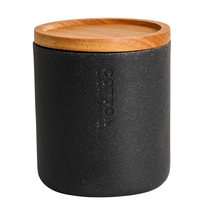 Berg je badkamer spulletjes op in dit stijlvolle opbergpotje met houten deksel.