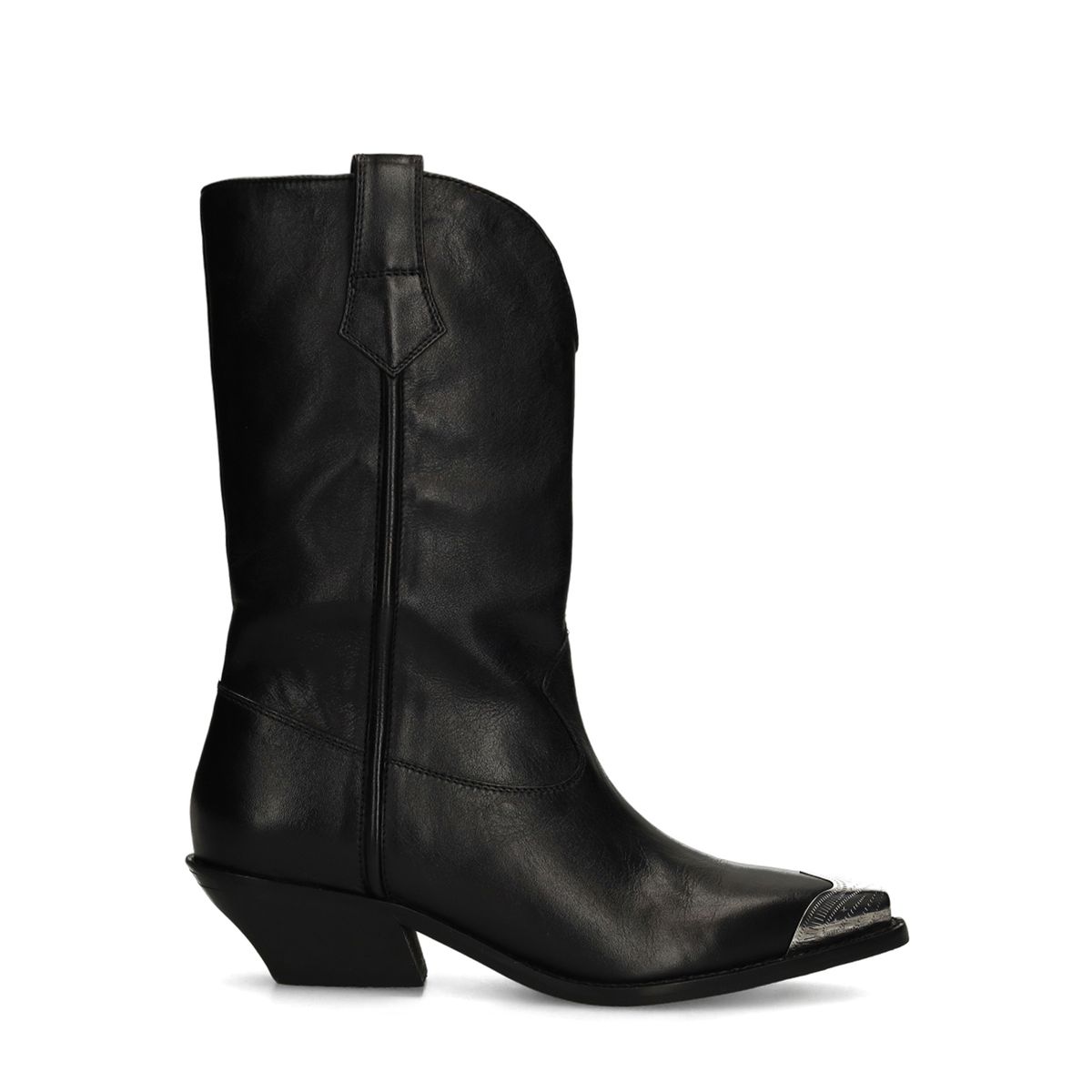 Deze zwarte leren cowboylaarzen van Sacha hebben een zilverkleurig detail op de neus.