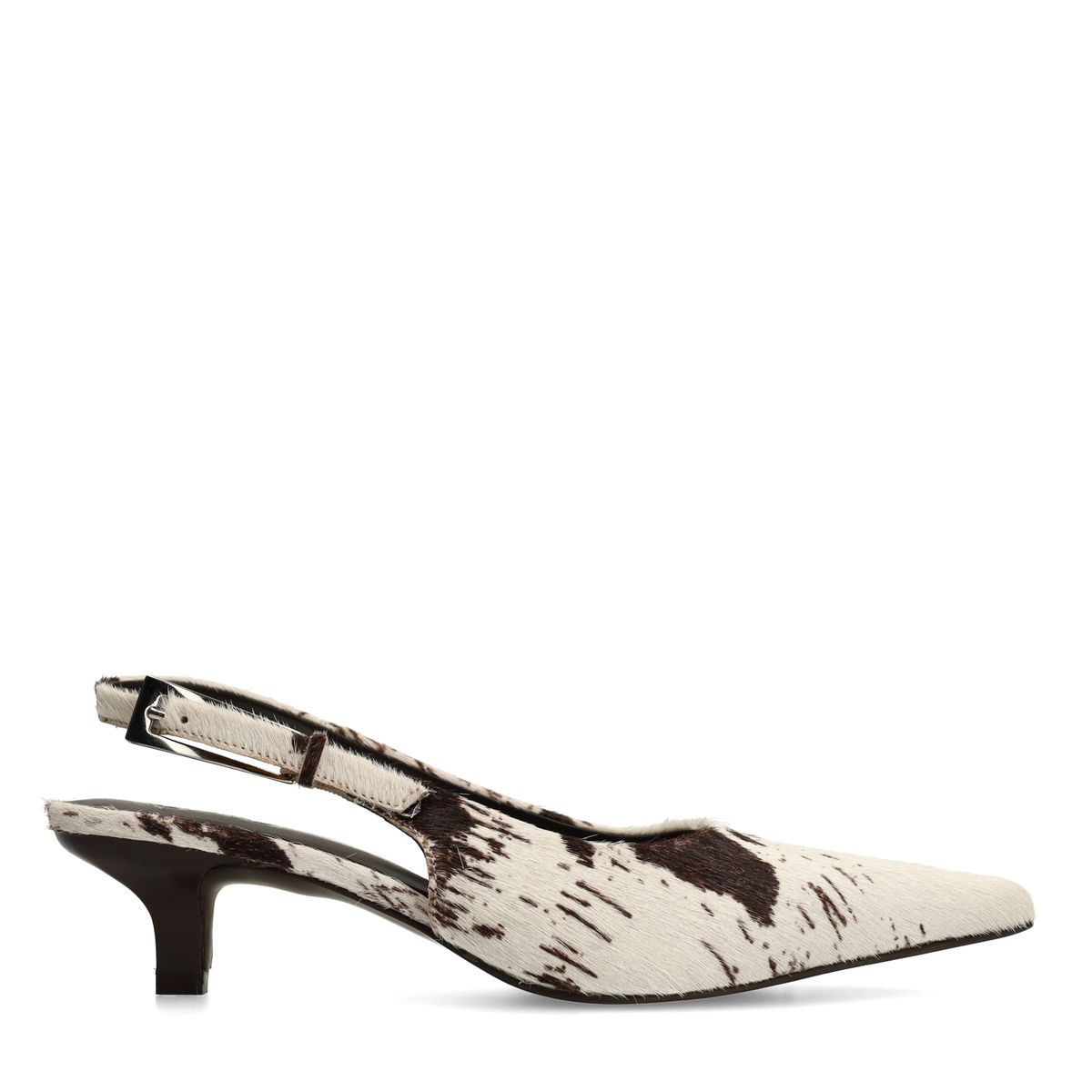 De pumps hebben een cow print van pony hair, waardoor iedere print uniek is. Deze cow print slingback pumps van Sacha hebben een lage trechterhak met een hoogte van 5 cm.