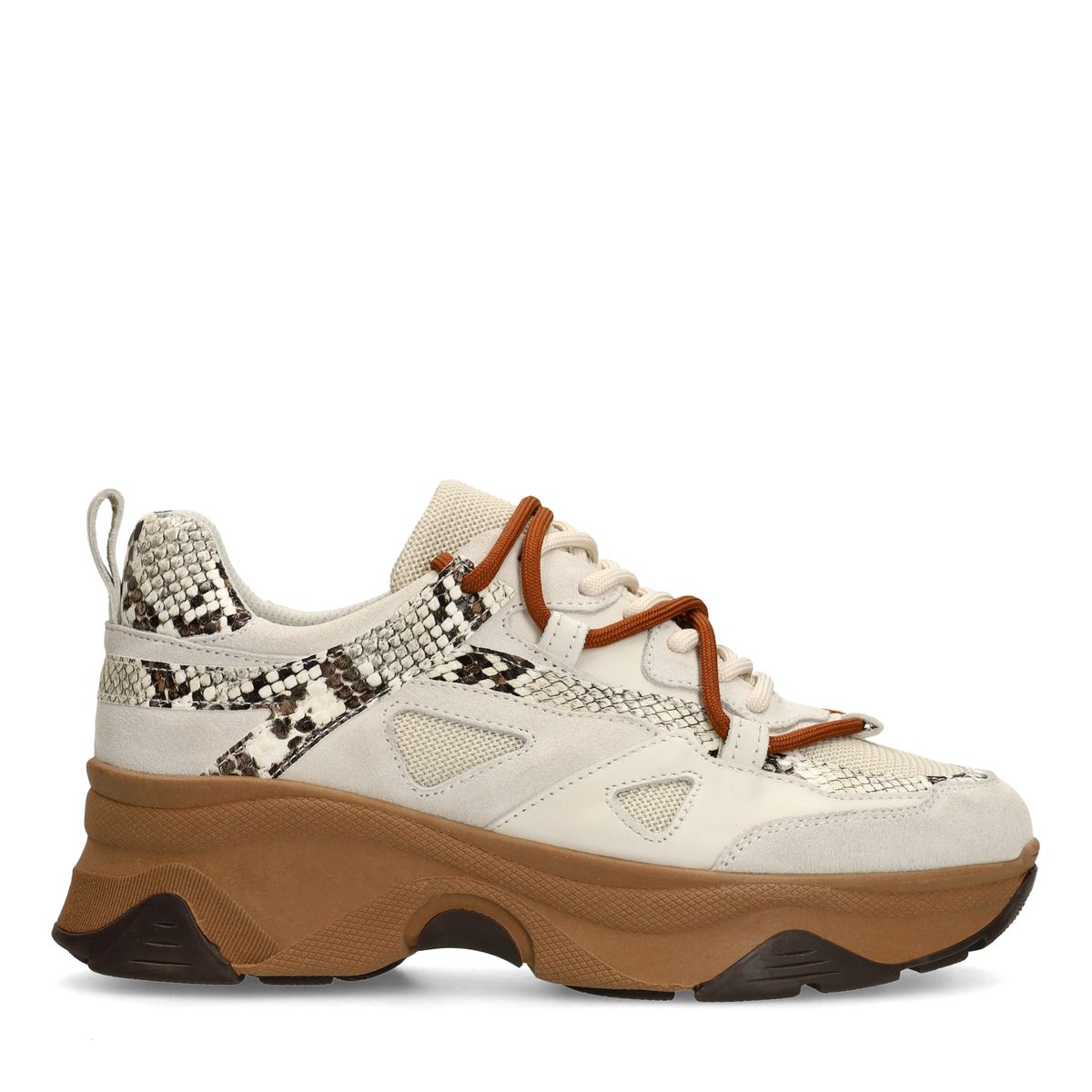 De binnenzool is uitneembaar. De sneakers hebben snake en bruine details en een zool van 5 cm hoog.