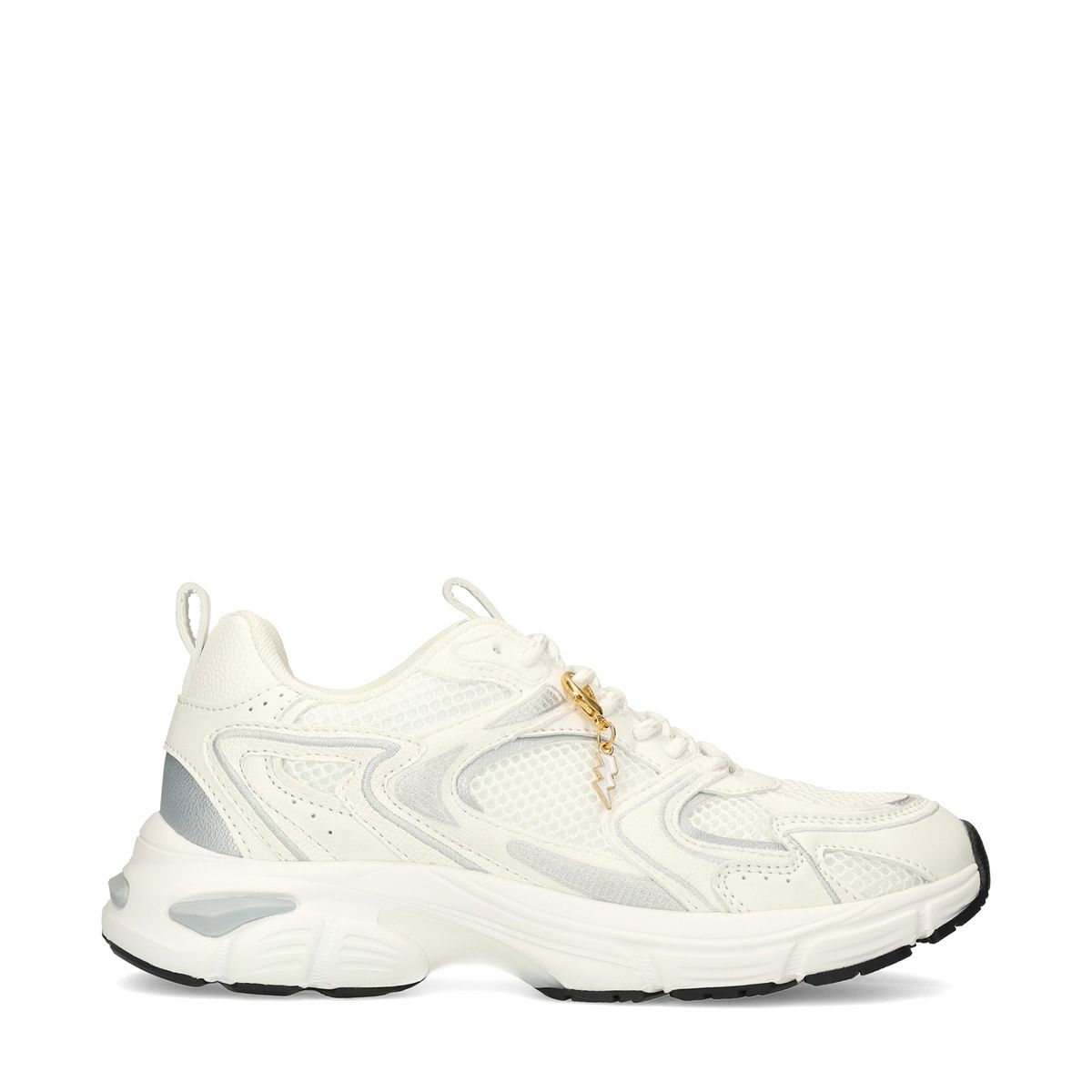 Hiernaast hebben de witte sneakers een zooldikte van 4 cm. Deze witte sneakers van Sacha hebben zilverkleurige details en een goudkleurige afneembare bedel.