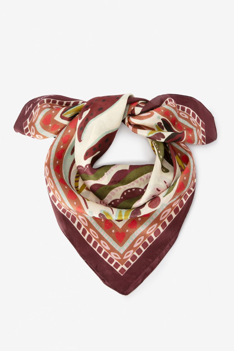 Afmeting: 67 x 69 cm. Rode sjaal met panter van Sissy-Boy Deze sjaal heeft een glanzende look en is bedrukt met een all-over panter en palmbomenprint.