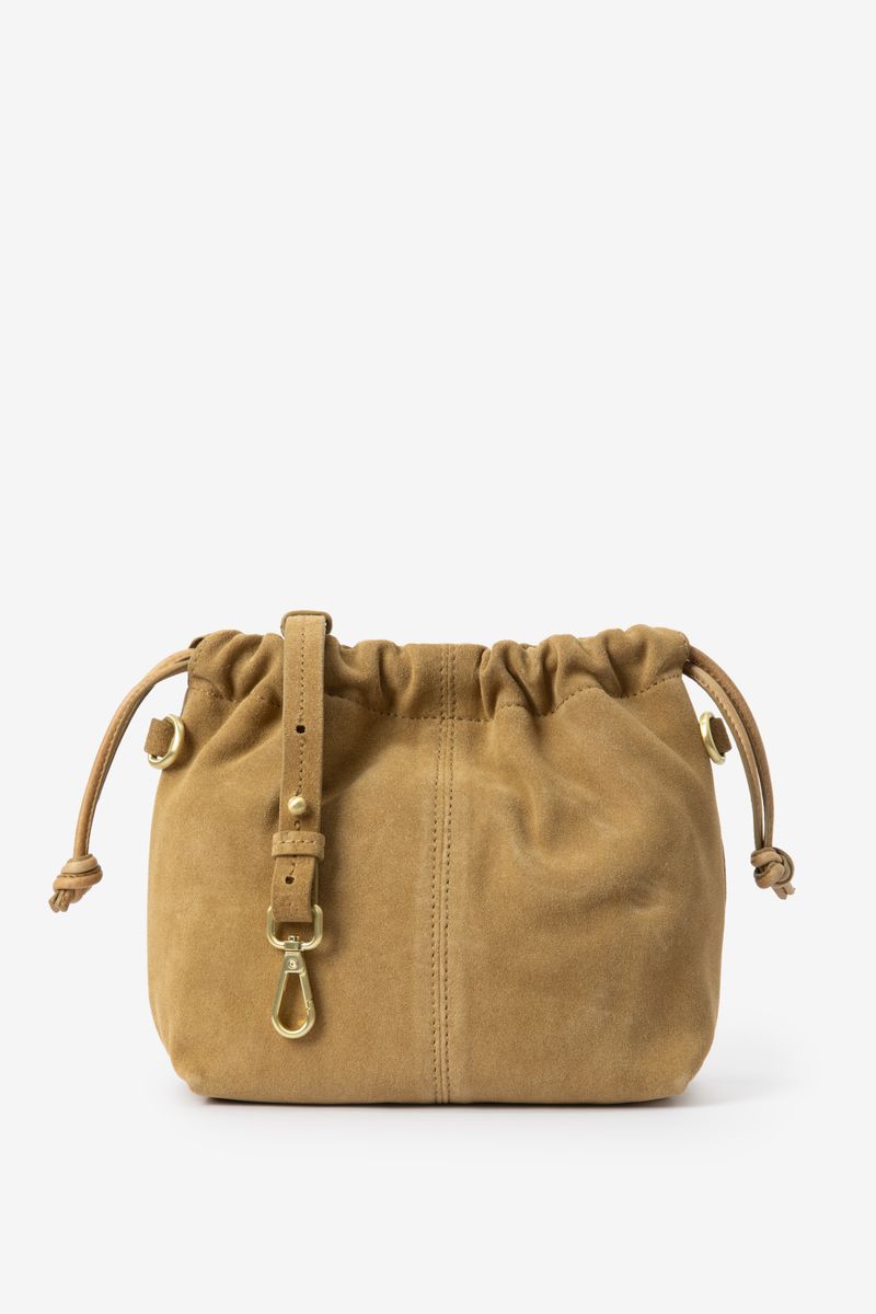 De tas sluit met een magnetische drukknoop en aantrekkoordjes, heeft een binnenvak en een lang hengsel dat in lengte verstelbaar en te verwijderen is. Donkergele crossbody pouch tas van Sissy-Boy.