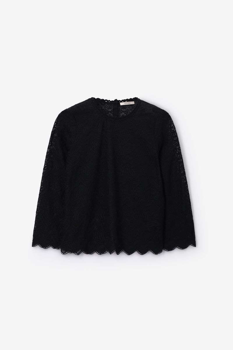Verder heeft de top een all-over kanten patroon en is het gemaakt van een mesh kwaliteit. De top heeft driekwart mouwen, een ronde halslijn en een regular fit.