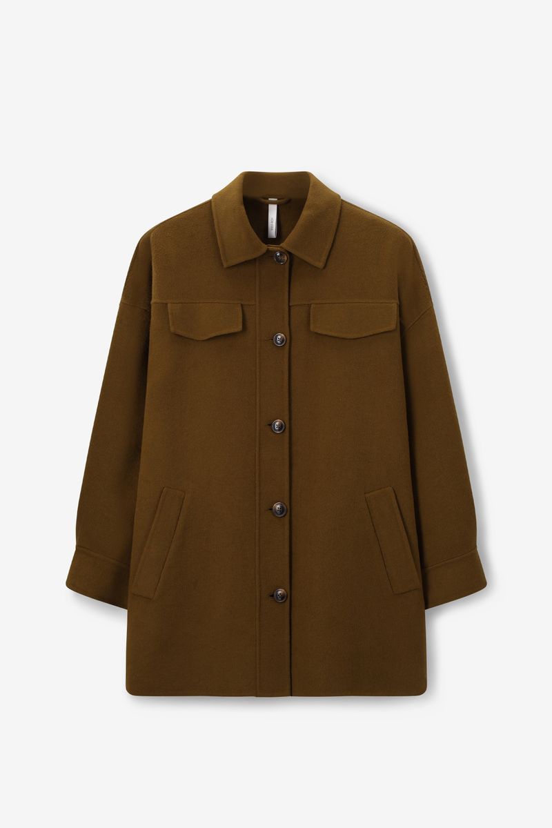 De jas heeft lange mouwen, steekzakken, borstzakken, verlaagde schouders en een relaxed fit. Donkergroene shirt jas van Sissy-Boy.