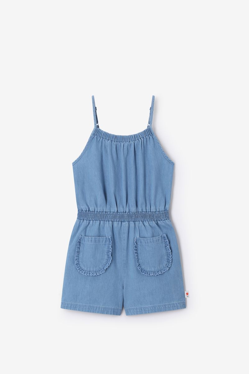 Verder heeft het twee opgestikte zakken met ruffles. De playsuit heeft spaghetti bandjes, een ronde halslijn en een elastische taille.