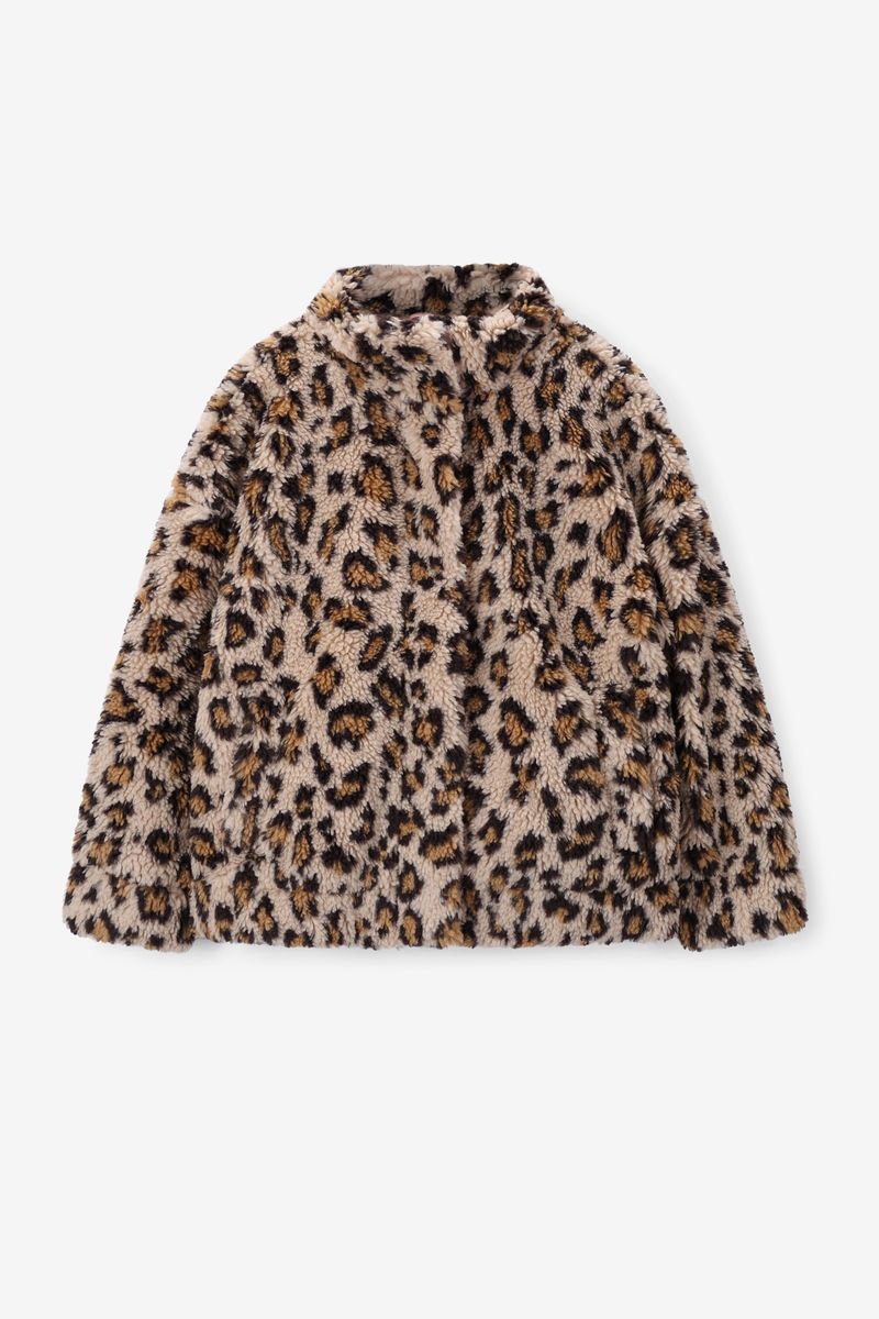 Verder heeft de jas een teddy stof kwaliteit met een all- over leopard print. De jas heeft lange mouwen, een hoge halslijn, steekzakken, een ritssluiting, drukknoopsluiting en een relaxed fit.