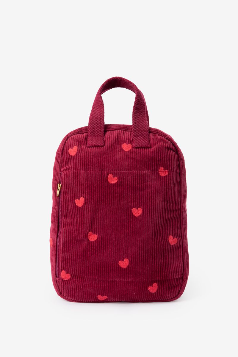 Naam | Donkerrode Corduroy Rugzak Met Hartjes |
