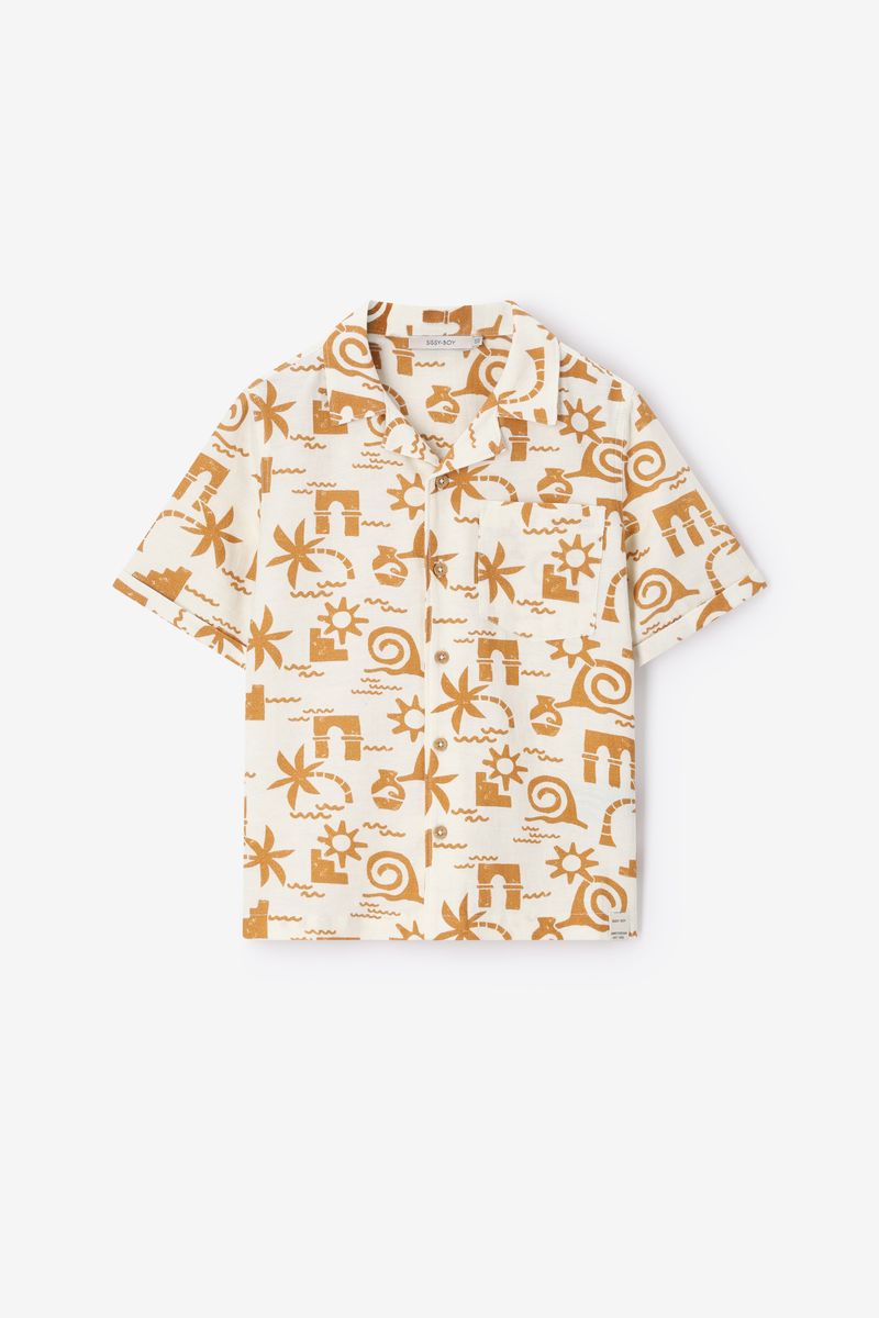 Verder heeft het overhemd een witte kleur met een all-over speelse print. Het overhemd heeft korte mouwen, een omgeslagen kraag, een knoopsluiting, een regular fit en een borstzak aan de voorzijde.
