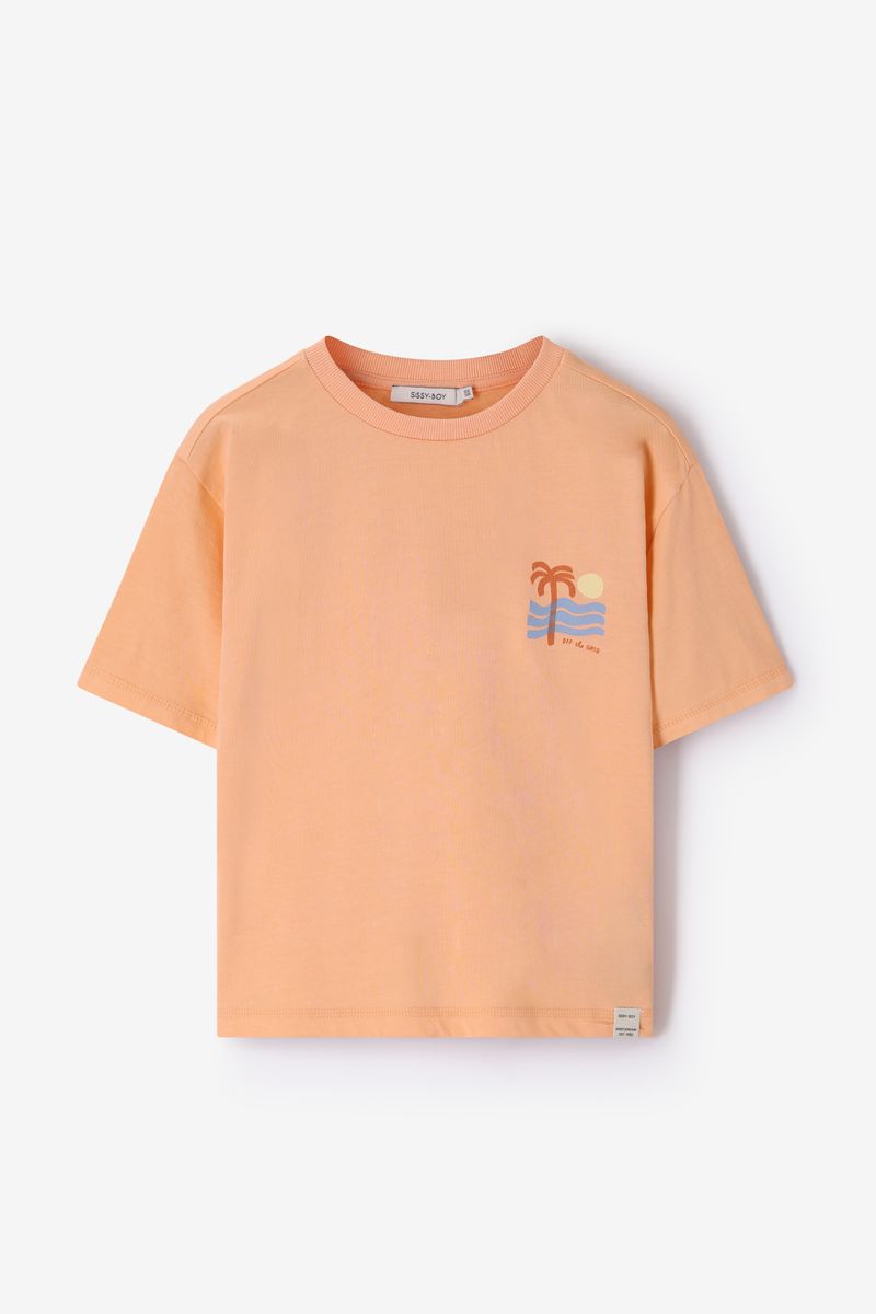 Lichtoranje T-shirt met artwork van Sissy-Boy.