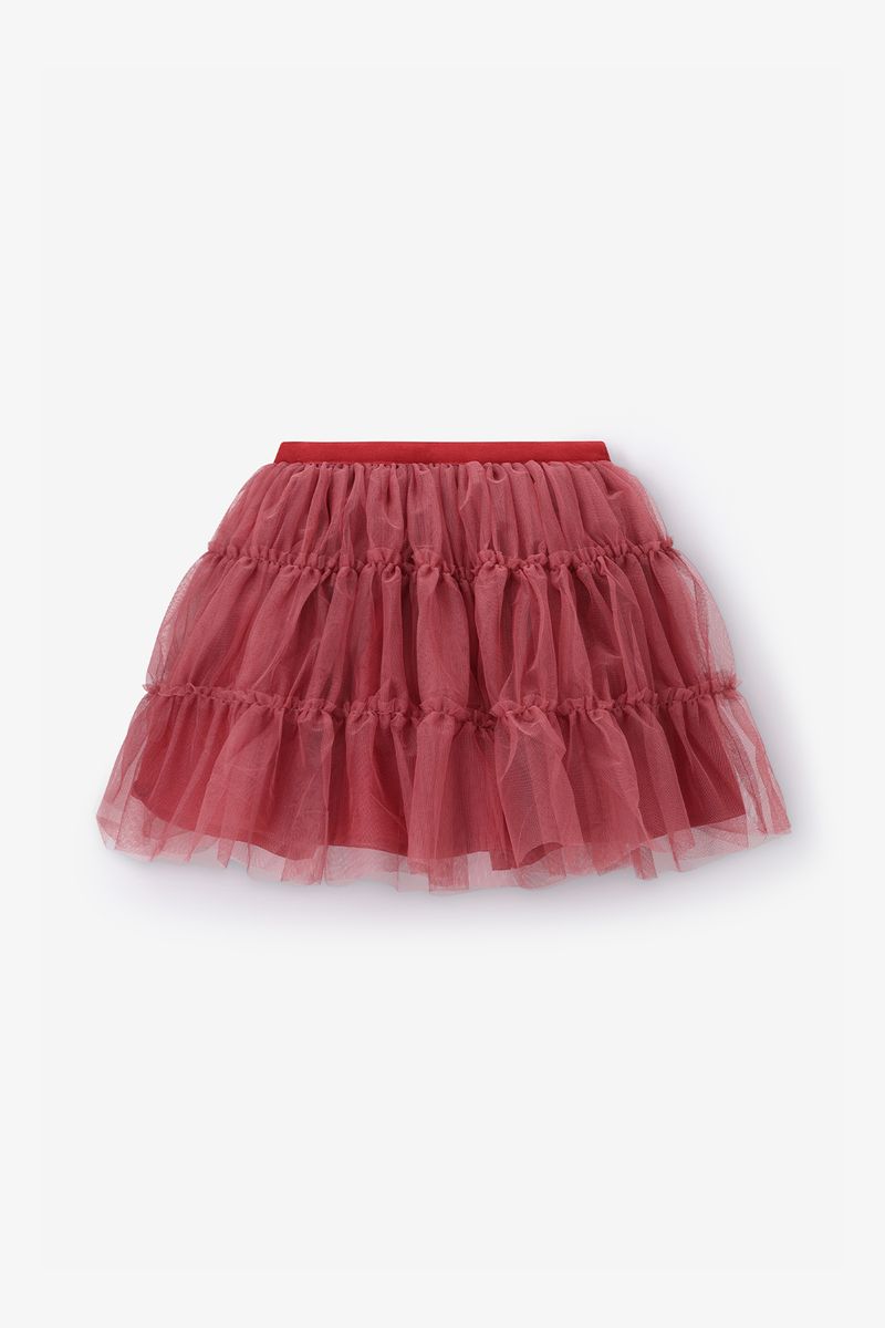Verder is de rok gemaakt met een tule kwaliteit stof. De rok heeft een rode kleur, elastieken tailleband en A-lijn model.