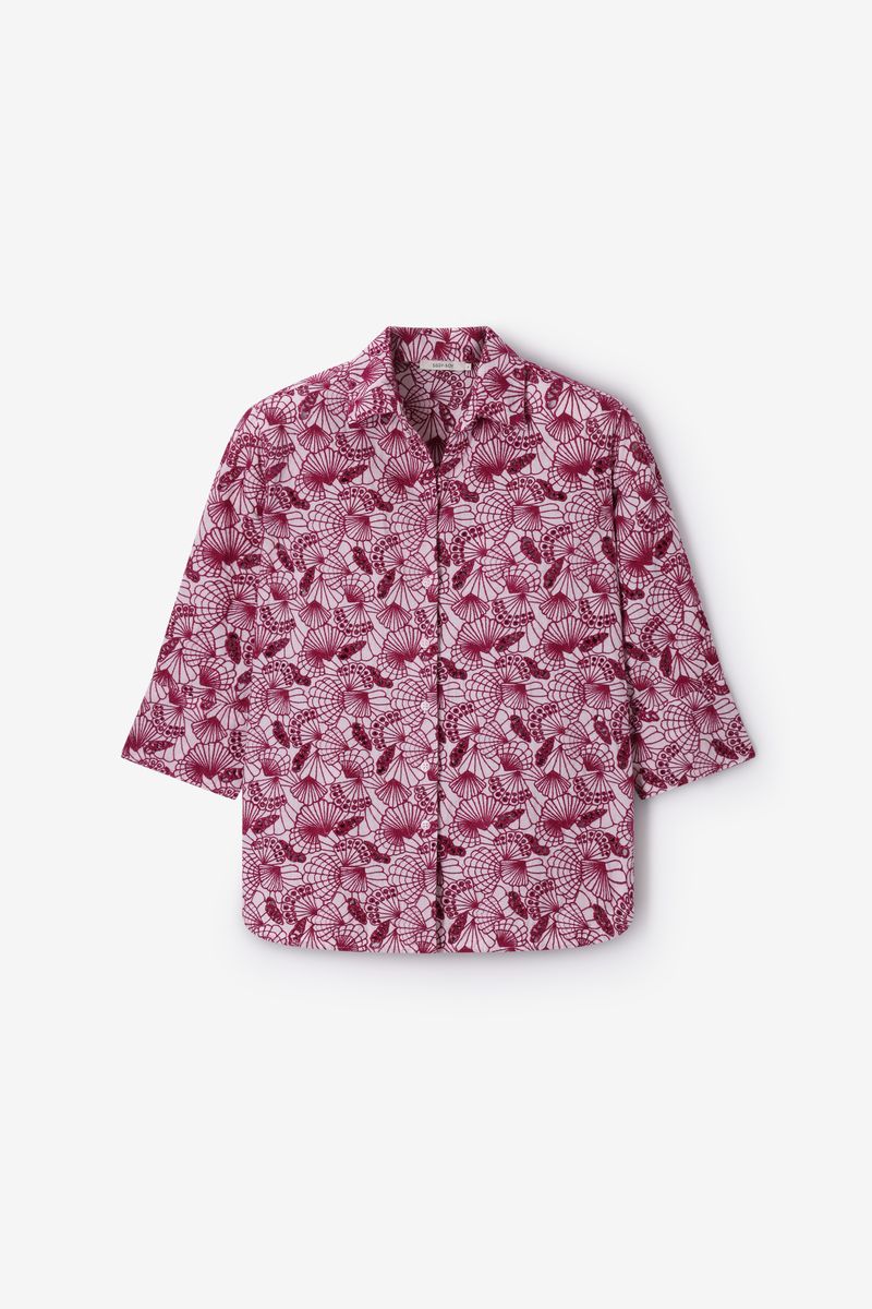 Verder heeft de blouse een lichtroze kleur met een all-over schelpen broderie design. De blouse heeft korte mouwen, een kraag en een knoopsluiting en een relaxed fit.