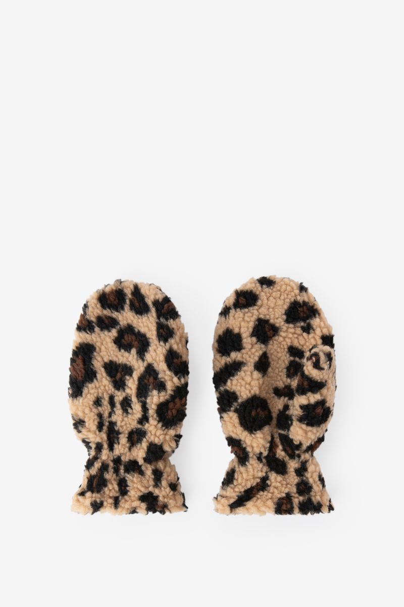 Verder hebben de wanten een bruine kleur met een all-over leopard print..
