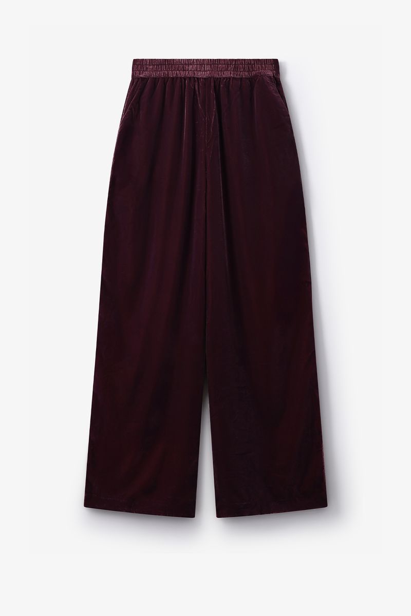 | Naam | Donkerrode Velvet Wide Leg Broek |