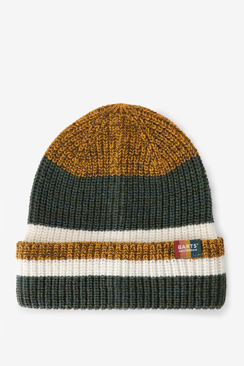 Een tijdloos en onmisbaar accessoire voor de koudere winterdagen, De beanie heeft een donkergroene kleur met een all-over strependesign. Donkergroene rib gebreide beanie van het merk Barts.
