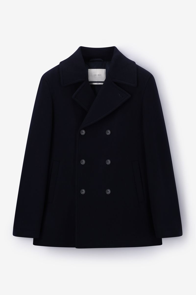 Naam | PRE-ORDER: Donkerblauwe Wollen Peacoat Jas |